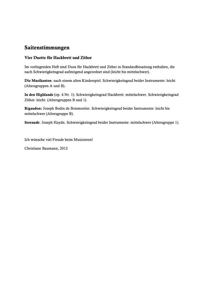 Vier Duette für Hackbrett und Zither in Standardbesaitung
