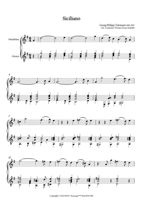 in G-Dur, TWV 41:G2 mit einem Gitarre-Continuo von Werner Franz Schörkl