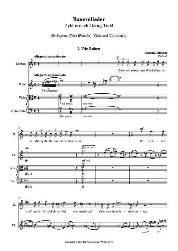 Sopran, Flöte (Piccolo), Viola und Violincello